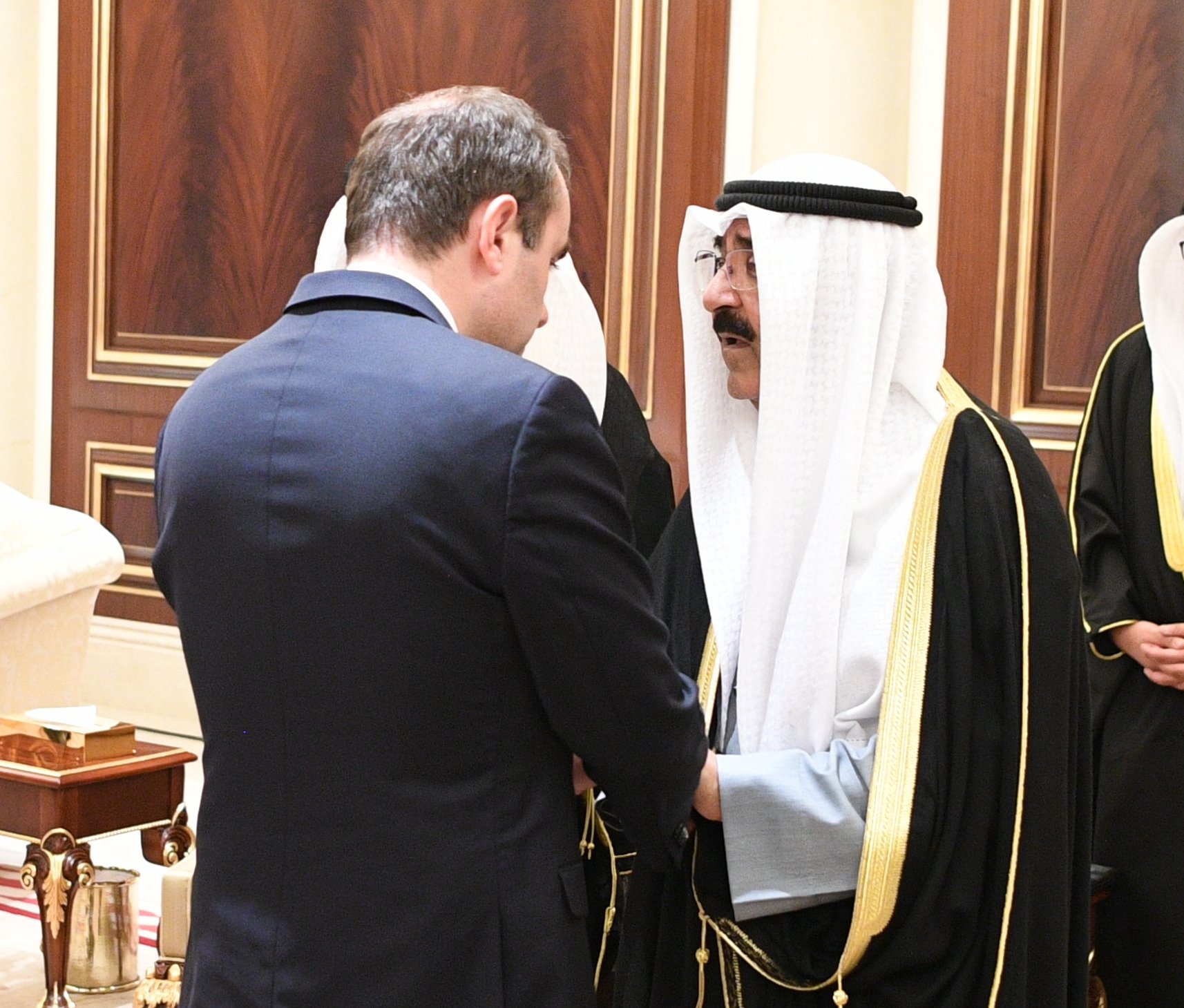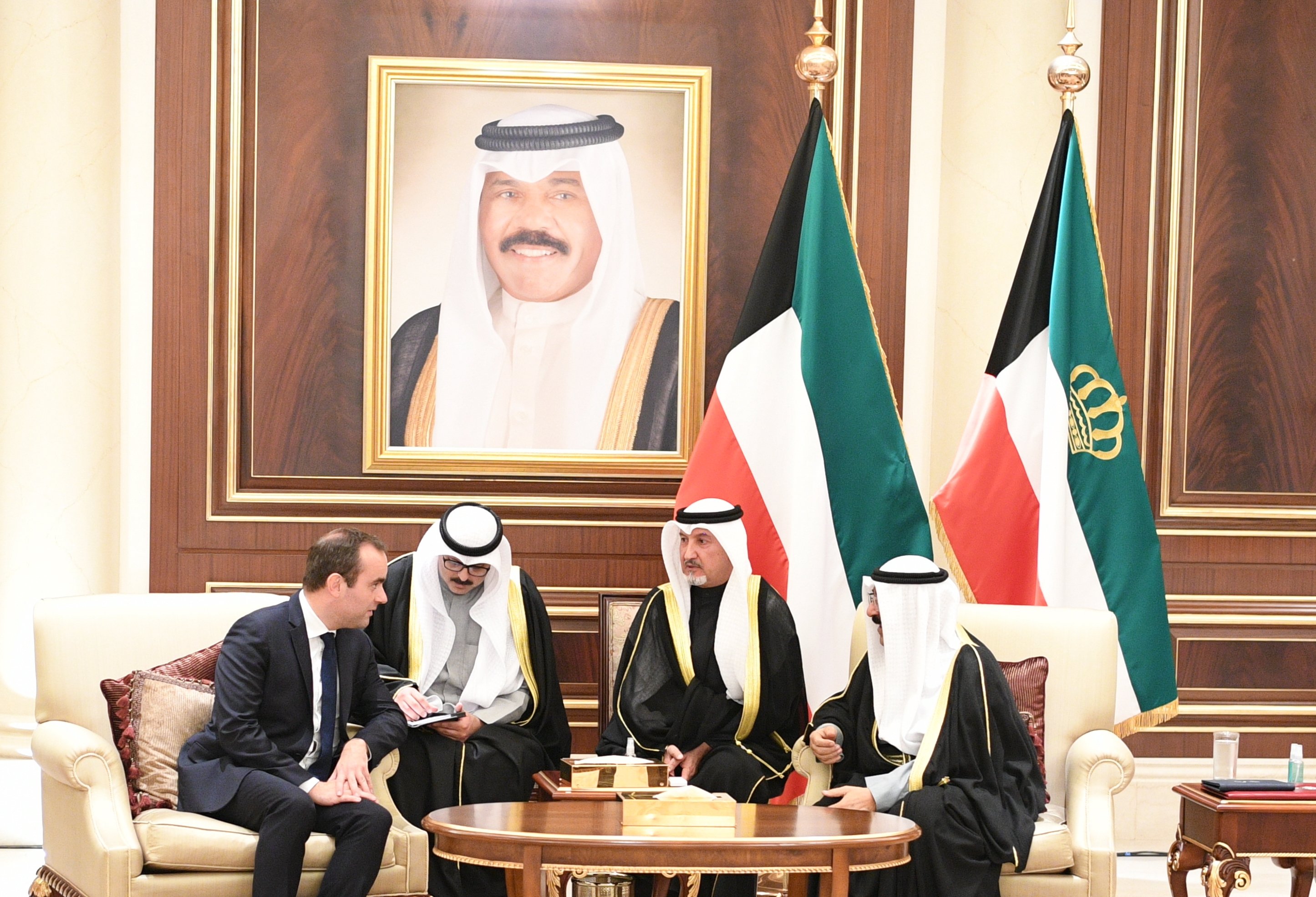 استقبل حضرة صاحب السمو أمير البلاد الشيخ مشعل الأحمد الجابر الصباح حفظه الله ورعاه في المطار الأميري مساء اليوم معالي وزير القوات المسلحة بجمهورية فرنسا الصديقة سيباستيان لوكورنو والوفد المرافق لمعاليه حيث قام بتقديم واجب العزاء في وفاة فقيد الوطن المغفور له بإذن الله تعالى حضرة صاحب السمو أمير البلاد الراحل الشيخ نواف الأحمد الجابر الصباح طيب الله ثراه وجعل الجنة مثواه. كما قدم التعازي إلى سمو الشيخ ناصر المحمد الأحمد الصباح وسمو الشيخ صباح خالد الحمد الصباح وسمو الشيخ أحمد نواف الأحمد الصباح رئيس مجلس الوزراء وأسرة سمو أمير البلاد الراحل طيب الله ثراه وجعل الجنة مثواه وعدد من الشيوخ الكرام. وقد كان في استقبال معاليه على أرض المطار معالي نائب رئيس مجلس الوزراء ووزير الدفاع الشيخ أحمد فهد الأحمد الصباح.